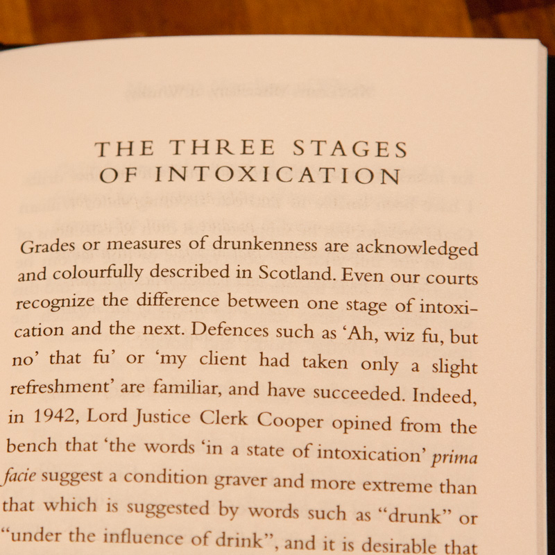 MacLean_Miscellany_of_Whisky_004Kirjan päätteeksi MacLean käyttää vielä tilaisuuden hyväkseen luvussa, joka on otsikoitu jylhästi: The Three Stages of Intoxication. Humaltumisen tasoiksi on jo muinoin 1820-luvulla muuan William Grant Stewart esitellyt seuraavat: Blythe, Bosky, Borajo. Blythe juontaa juurensa vanhan englannin blitheen, joka siis tarkoittaa iloista ja riemukasta. Bosky taas on peräisin latinan pensasta tarkoittavasta boscus-sanasta, ja borajo taas espanjan juopunutta merkitsevästä borachosta. Näistä tasoista MacLean saa melkoisen semanttisen selvittelyn aikaiseksi, ja pitkän pohdinnan lopputuloksena on, että viskiä voi tosiaan nauttia myös liikaa.