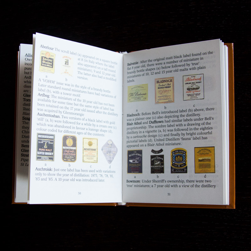 Kun asian pitää mielessä, Alan Keeganin Scotch in Miniature. A Collector’s Guide to Whisky Miniatures (Famedram, neljäs laitos, 2001) on oikeastaan aika hauska pieni kirja. Aiemmissa kirjan laitoksissa – ensimmäinen vuodelta 1982 – oli pystytty luettelemaan kaikki myynnissä olleet viskiminiatyyrit, mutta 2000-luvun alussa peli oli lopullisesti menetetty, kun viskivalikoimien määrä räjähti käsiin. Siitä tulee minityyrien keräilyä käsittelevään kirjaan hassu pohjavire. Neuvotaan keräilemään, mutta ei enää pystytäkään kertomaan, mitä keräiltävissä on. Vuonna 1996 julkaistun kolmannen laitoksen jälkeen kirjan ajatus on päässyt hiukan karkaamaan.