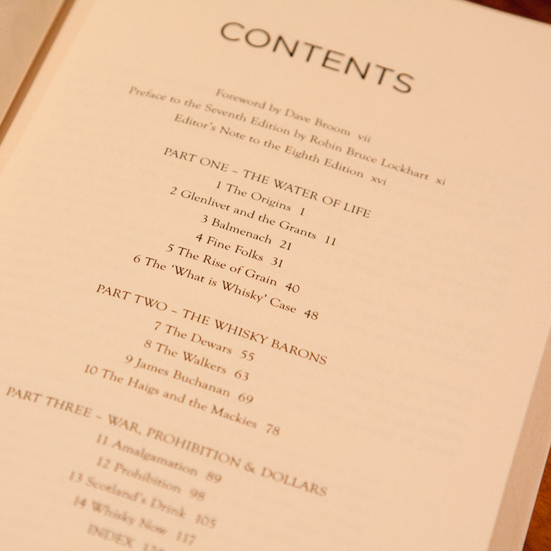 Käsiini sattunut kirjan kahdeksas laitos on päivitetty vuonna 2011. Esipuheen on kirjoittanut Dave Broom, mutta mukana on myös seitsemännen laitoksen esipuhe Sir Robert Bruce Lockhardin pojalta Robin Bruce Lockhartilta – päivätty 1995. Lisäksi kustantaja, itsekin viskikirjailijana kunnostautunut Neil Wilson sanoo esipuheissa sanottavansa teoksesta.