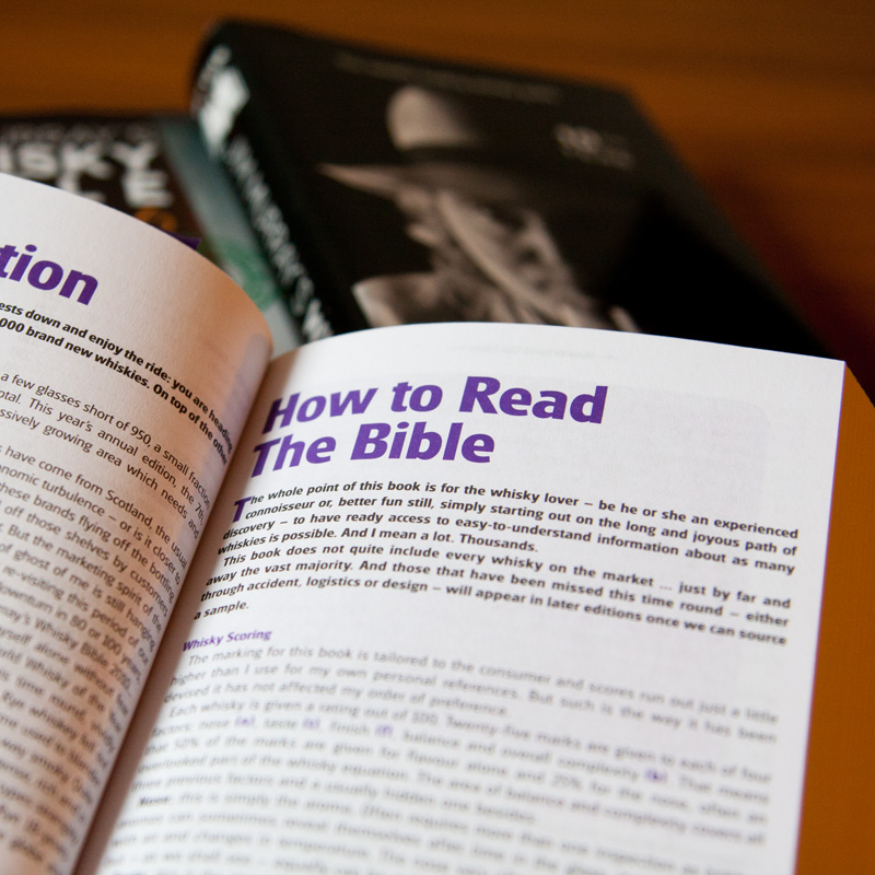 Tiesin kyllä jo viskiharrastukseni alkutaipaleella näistä viskiraamatuista, mutta ensimmäisen Whisky Biblen hankin vasta syksyllä 2009. Yritin itse asiassa lukea sitä aluksi melko tosissani, mutta jossain vaiheessa tajusin sen mahdottomaksi. Murrayn neliosainen pistejärjestelmä, puolikkaat pisteet ja täysin käsittämättömät aistimuskuvaukset menivät monin paikoin yli hilseen.