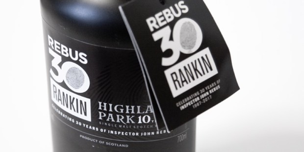 Highland Park juhlistaa Rebusin 30-vuotiasta taivalta tällä pullotteella. Ensimmäinen Rebus-teos Knots and Crosses ilmestyi 1987 (suomennos Ristinolla saatiin vuonna 2001).