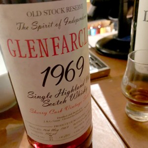 Pienen rauhoittumisen jälkeen tunsin voimakasta vetoa Pikkulinnun paikalle tuomia vanhoja Glenfarclas-pullotteita kohtaan. Niistä päätin valita maistettavaksi kaksi. Ensin lasiin kaatui Glenfarclas 1969/2003 Cask #2899, 41,1%, joka oli minulle tuon aiemmin mainitun 25-vuotiaan Springbankin ohessa koko festivaalin paras viski. Aivan eeppinen sherryttely, ei voi muuta sanoa. Myös hiukan sen jälkeen maistamani Glenfarclas 1968/2000, 43% oli tyylikäs esitys, vaikka jäikin rungoltaan ja luonteikkuudeltaan pykälän tuosta 1969:stä jälkeen. Joka tapauksessa nämä kaksi 1960-luvun Glenfarclasia kruunasivat oman iltani.