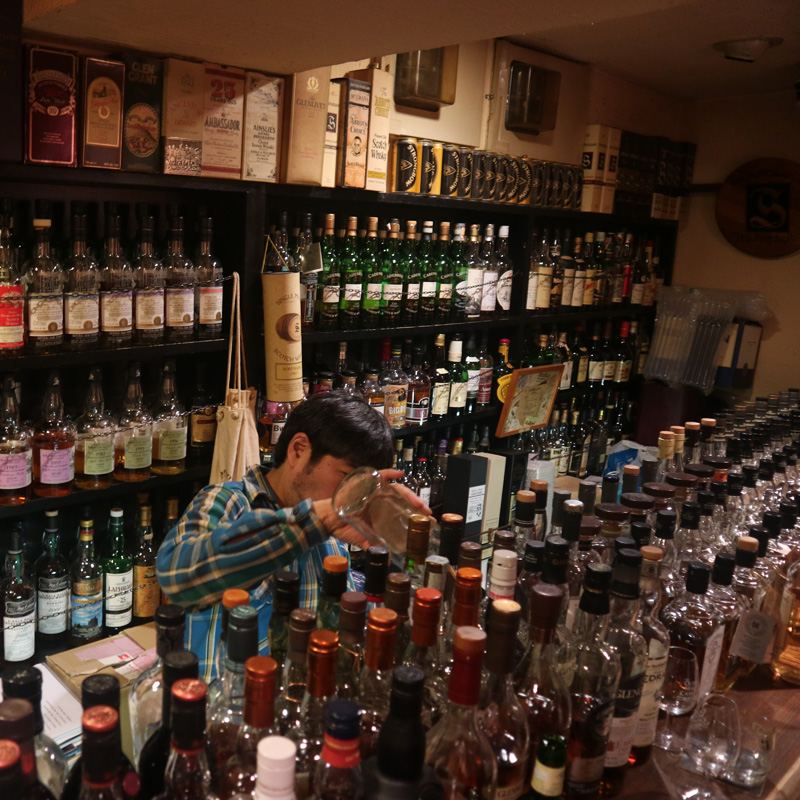 Juttelin tuolloin pitkät pätkät omistaja Nobiyuki Nakamuran kanssa ja pyysin häntä poimimaan järkihintaisia erikoisuuksia hyllyistään. Valikoimaa olisi riittänyt kokonaisen viikon istuntoihin. Omistaja itse on erittäin kova Campbeltown-fani, minkä takia baarikin on nimetty sen mukaan. Lisäksi Islay-viskien edustus on ilahduttavaa. Nobiyuki-san kertoi käyvänsä Skotlannissa varsin usein hakemassa täydennyksiä valikoimiinsa. Siksi hyllyt pursuavat erikoisuuksia ja erilaisia hand filled -pulloja. Esimerkiksi nauttimani Bowmore oli omistajan itsensä käsin pullottamaa tavaraa. Japanilaisia viskejä Campbelltoun Lochissa ei juuri ollut, mutta skotlantilaisia sitten sitäkin enemmän.
