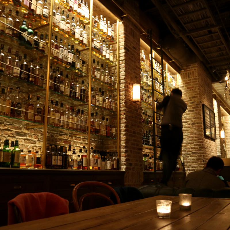 Eräänä iltana löysin tieni myös Omotesandôssa sijaitsevaan Tokio Whisky Libraryyn. En löytänyt sitä mistään viskioppaasta, mutta ystäväni oli suositellut piipahtamaan siellä. Paikka sijaitsi Dieselin vaatekaupan yläkerrassa hienostoalueella, ja tarjoilija tuli välittömästi ohjaamaan pöytään. Hintataso oli erittäin korkea mutta palvelu ensiluokkaista. Nautin pari Japanin-markkinoille tehtyä pullotetta sieltä edullisemmasta päästä ja ihmettelin seiniä kiertäviä viskihyllyjä, joihin oli pultattu liikuteltavat tikapuut kiinni. Valikoimassa oli muun muassa runsaasti Elements of Islay -sarjaa ja muuta keskihintaista, mutta mitään täysin päätöntä en löytänyt. Pääosa oli single malteja Skotlannista, minkä lisäksi hyllyillä oli paljon vähän vanhempia blendejä, jotka oli hinnoiteltu etiketin koreuden mukaan. Japanilaisia viskejä ei juuri näkynyt.