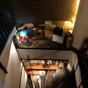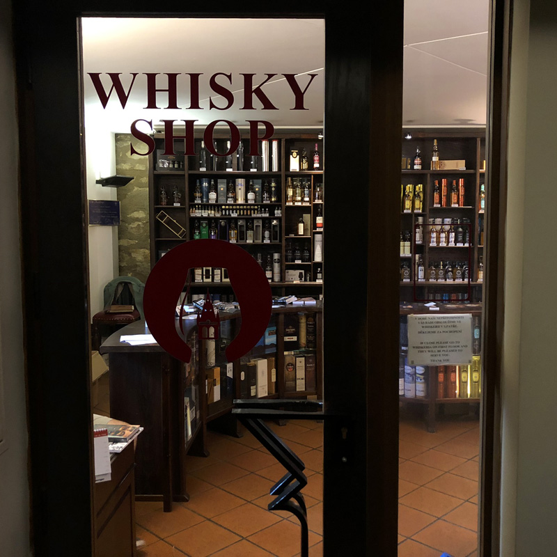 Viskibaariksi Whiskerian lokaatio on kiistatta hulppea. Pyhän Henrikin torni (englanniksi St. Henry’s Tower, tšekiksi Jindřišska věž) on rakennettu jo 1470-luvulla, ja sitä on paranneltu vuosisatojen saatossa moneen otteeseen. Jyhkeä 65,7-metrinen kellotorni näkyy myös Venceslauksen aukiolle. Kiipesin ensin kolmannen kerroksen Whisky Shopiin koluamaan valikoimia, mutta en sillä kertaa löytänyt mukaani mitään. Siitä tulin kerroksen alaspäin ja astuin baariin. Menin ylipäänsä torniin niin höyryissäni, etten tajunnut, että baarin varsinainen sisäänkäynti olisi ollut katutasolla. Ihmettelin jonkin aikaa yksikseni tyhjää tiskiä kakkoskerroksessa, ennen kuin baarimikko saapui alakerrasta paikalle.