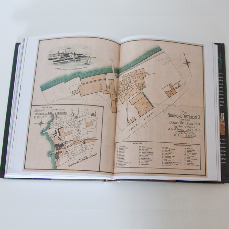 Bowmore-esittely on näistä tietysti merkittävin, jo pelkästään asiakirjojen ja materiaalin osalta. Kokonaisuutena Bowmore-osuuden laajuus on melkein saman kuin mitä Auchentoshanilla ja Glen Gariochilla yhteensä. David ja Hector Simsonin 1779 aloittama tislaamo päätyi William ja James Mutterille 1837, kunnes siirtyi vuonna 1892 Lontoossa toimivan sijoitusyhtiön haltuun ja muutettiin Bowmore Distillery Companyksi. J.B. Sherriff & Co. piti tislaamoa hallussaan 1925–1950 ja William Grigor & Son Ltd. oli omistajana 1950–1963. Sitten Stanley P. Morrison tuli kuvioihin ja alkoi Morrison Bowmoren aikakausi.