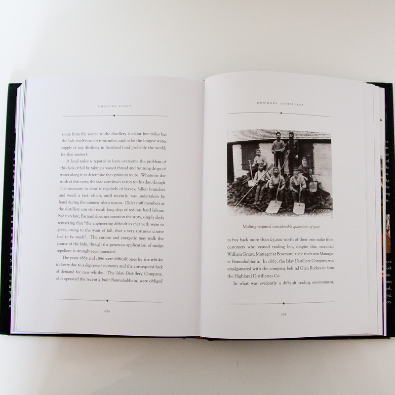 Kiinnostavia pieniä yksityiskohtia historian varrelta toki löytyy, vaikka tekstin yleiskuva onkin jäykänpuoleinen. Mielenkiintoinen anekdootti on kirjattu ylös loppuvuodelta 1991, kun Bowmoren washbackit uudistettiin. Uusien pönttöjen alle kaivettiin monttu, josta tehtiin aikakapseli. Sinne on haudattuna valokuvia nykyisistä ja menneistä työntekijöistä, kyseisen päivän sanomalehdet (The Ileach tietysti mukaan luettuna), kaikkien yhtiön kolmen tislaamon pullotteet sekä esimerkiksi tuon vuoden juna-, lento- ja lautta-aikataulut.