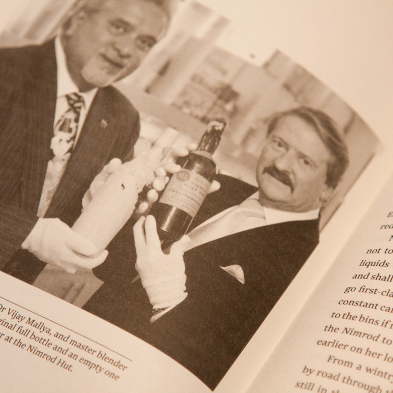 Tarina on kokonaisuudessaan erittäin herkullinen. Ernest Shackletonin retkikunta kuljetti Nimrod-laivallaan vuonna 1907 yhteensä 25 laatikkoa eli rapeat 300 pulloa MacKinlay’s Rare Old Higland Malt Whiskyä Etelämantereelle, joi kahden vuoden aikana siitä huomattavan osan ja lähtiessään hautasi jäljelle jääneen viskisaaliin. Kolme laatikkoa löydettiin sata vuotta myöhemmin, ja kun viski oli huolellisesti sulatettu, kolmen pullon verran nestettä päätyi Whyte & Mackayn käsiin ja mestarisekoittajan Richard Patersonin nenän alle.
