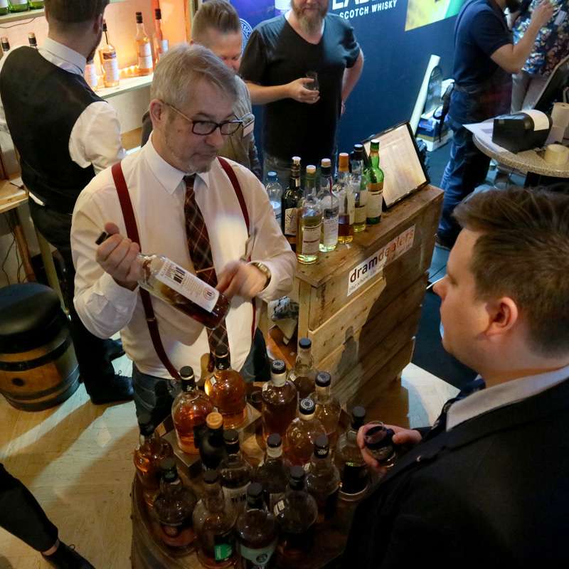 Tänä vuonna Seamchip-kortit olivat kadonneet ja omat luottokortit ja mobiilimaksut olivat tulleet tilalle. Ostin ensitöikseni Dram Dealersin kojusta lasiini Tomatin 36 yo Batch #5, 46% -viskin. Iäkkäät Tomatinit ovat listoillani erittäin korkealla, eikä tämäkään pullote pettänyt. Nyt oltiin hedelmäisyyden kanssa varsin kuivassa ja mineraalisessa päädyssä. Herkullinen viski ja oikeanlainen avaus ennen totaalisempia makuja.