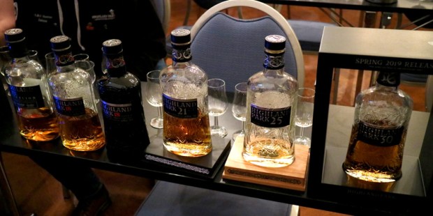 Perussarjan 18-vuotiaan rinnalla maistettiin vielä tax free -myyntiin suunnattu Highland Park 18 yo Viking Pride Travel Edition 46%. Se oli vierekkäin maistettuna melkoinen hyppy perustuotteesta ylöspäin, enkä usko, että vaikutus tulee pelkästään kolmen prosenttiyksikön noususta pullotusvahvuudessa. Pidin kovasti sen öljyisestä ja vaativasta perusluonteesta, kaikesta kanervahunajasta ja vahamaisuudesta. ”Niille teistä, jotka ette ole maistaneet Highland Parkia aiemmin, tiedoksi: karamelliväri maksaa rahaa, ja skotlantilaiset omistajat eivät halua maksaa mistään. Siksi Highland Parkin viskeissä ei ole karamelliväriä mukana.”