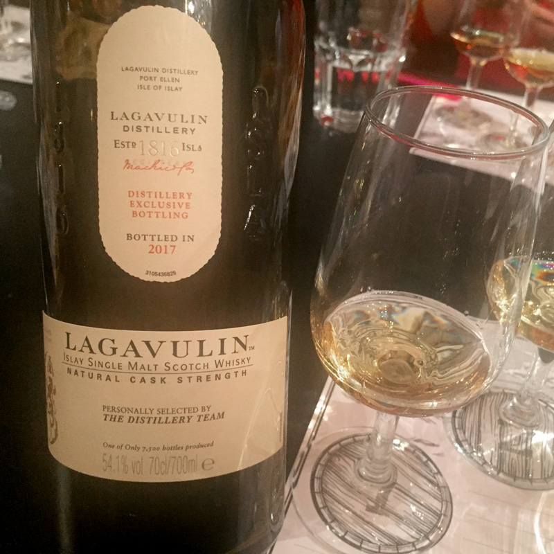 Lahti aloitti baarimikkona 18-vuotiaana ja Nikkanen hänen viskiharrastustaan ryhtyi Punavuoren Ahvenessa ohjaamaan – siinä mielessä hauska asetelma tähän tastingiin. Lahti kävi tastingin aluksi Lagavulinin historian nopeasti läpi, laittomasta tislauksesta Malt Millin kautta nykypäivään. Lahden kolme aina toistuvaa pointtia Lagavulinista ovat ihmiset, paikka ja itse neste. Lagavulinilla viskiä tehneet ihmiset ovat kiistatta olennaisia, aina Peter Mackiesta Iain McArthuriin. Paikan suhteen asetelma oli sinänsä hauska, koska Lahti ei itse ole vielä tislaamolla päässyt käymään – sen hetki on tulossa vasta ensi vuonna. Mutta itse neste, senhän takia me olimme paikalle tulleet.