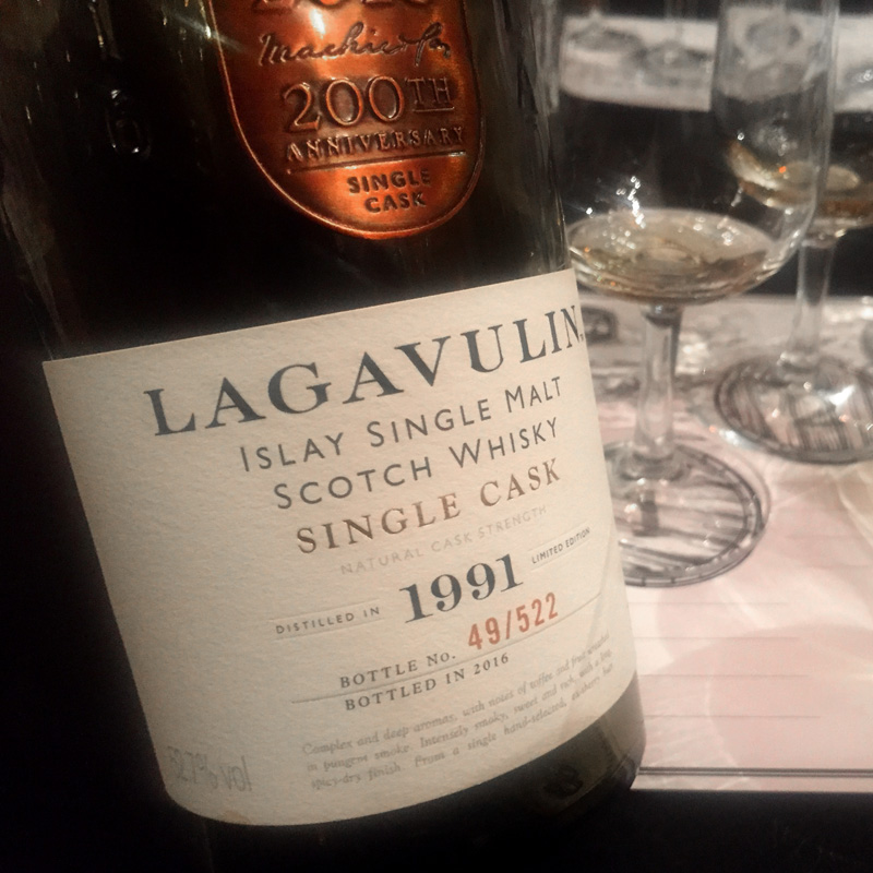 Tastingin viides viski oli Lagavulin 25 yo 200th Anniversary 2016, 51,7%. Muistan katselleeni pulloa viime vuonna Lagavulinin Visitor Centerin vitriissä kaihoisasti, mutta kun siihen ei liittynyt mitään legendaarisuuden vivahteita, en edes ajatellut haluavani sitä. Nyt tilanne muuttui dramaattisesti.